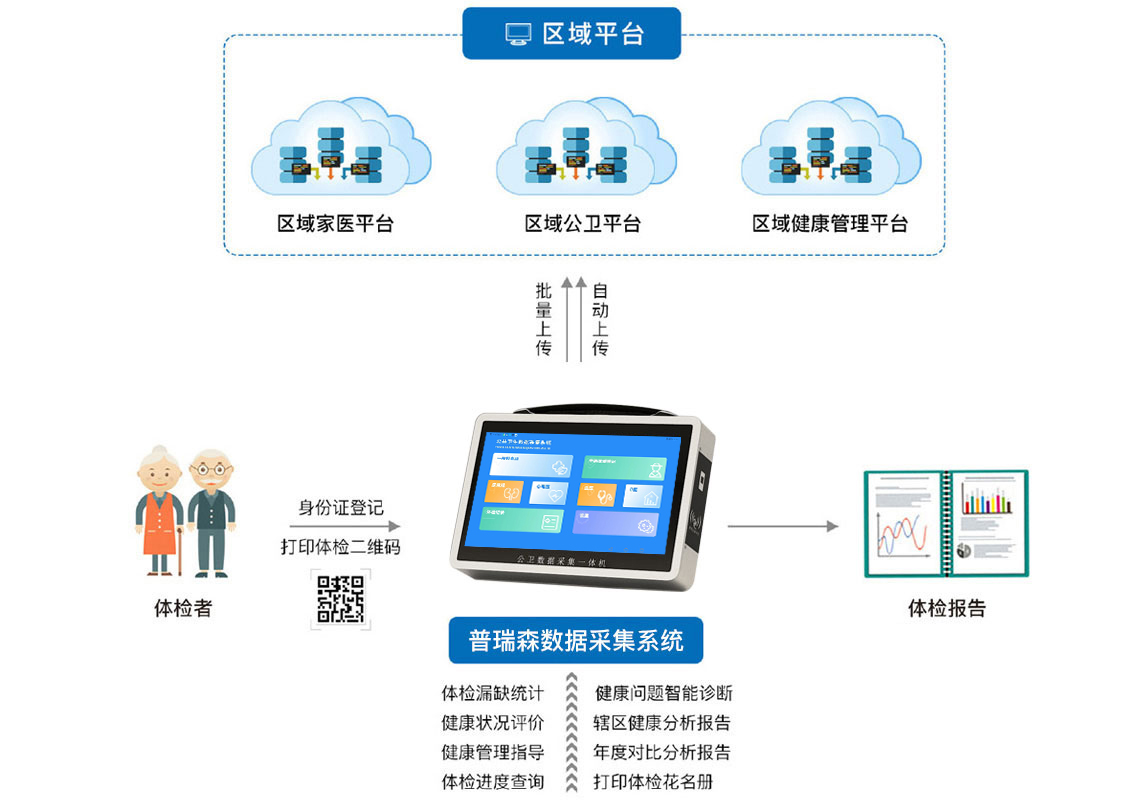 該系統(tǒng)按照縣、鄉(xiāng)、村三級(jí)應(yīng)用設(shè)計(jì),以便捷式應(yīng)用、智能化應(yīng)用、多場(chǎng)景應(yīng)用為導(dǎo)向,按照滿足院內(nèi)專(zhuān)業(yè)體檢、下鄉(xiāng)便攜式體檢、移動(dòng)體檢車(chē)體檢及區(qū)域化融合體檢等多種模式搭建,為基層醫(yī)療機(jī)構(gòu)公共衛(wèi)生信息化最后一公里提供一站式解決方案,實(shí)現(xiàn)國(guó)家“讓數(shù)據(jù)多跑路,百姓少跑腿”的相關(guān)要求。